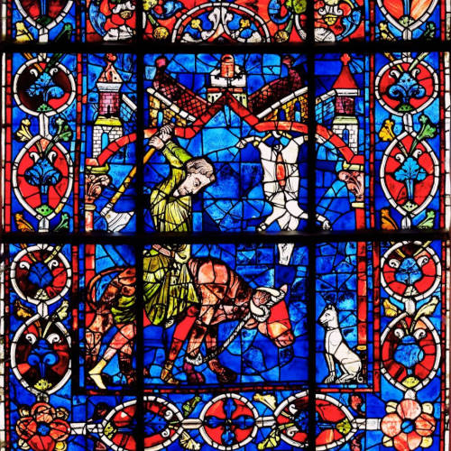 Il était une fois, dans la grande ville de Chartres, une magnifique cathédrale. Cette cathédrale n’était pas seulement un lieu pour prier ; elle était aussi remplie de vitraux colorés qui racontaient des histoires de métiers importants. Les enfants de Chartres aimaient venir les admirer et écouter les légendes sur ceux qui travaillaient pour aider les autres.